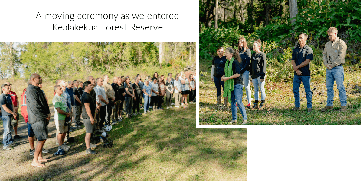 The flora of Hawai'i are deeply embedded in Hawai'i culture, and doTERRA is completely committed to honouring this heritage as they work to restore the forest. One way that they do this is by supporting the Hula Schools, and another way is by incorporating traditional ceremonies into the work on the Kealakekua Forest Reserve.