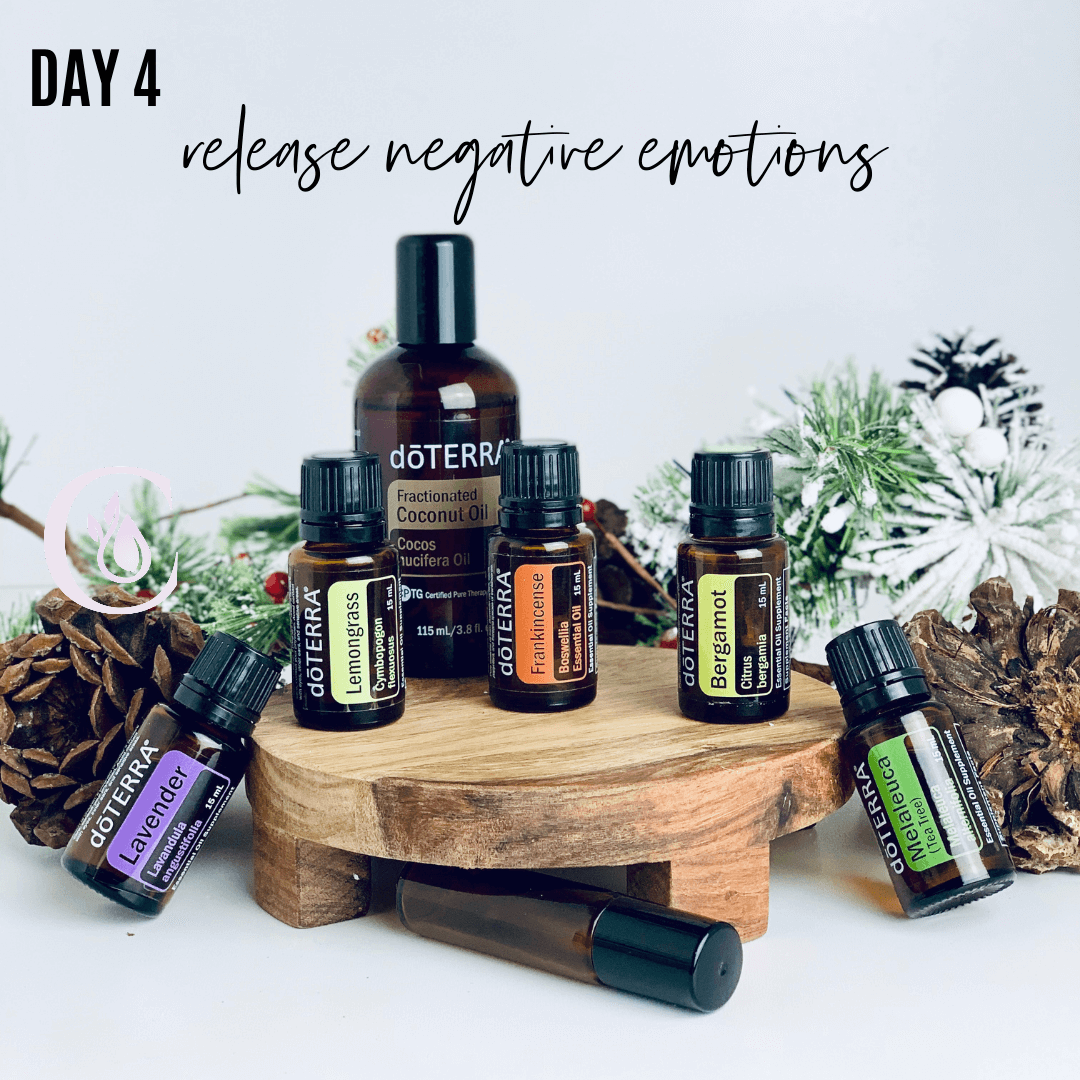 Day 4: Release Negative Emotions with Frankincense, Lemongrass, Lavender, Bergamot and Tea Tree. Are you looking for a blend to boost and uplift your mood? Look no further, this combo of oils not only helps to lift your spirits, but also helps to release negative emotions you may be harbouring deep inside. Topically: Combine desired drops (see dilution ratios below) to a 10ml roller, apply to wrist and over your heart to combat negative emotions. Aromatically: Combine 2-3 drops of each and diffuse throughout the day.