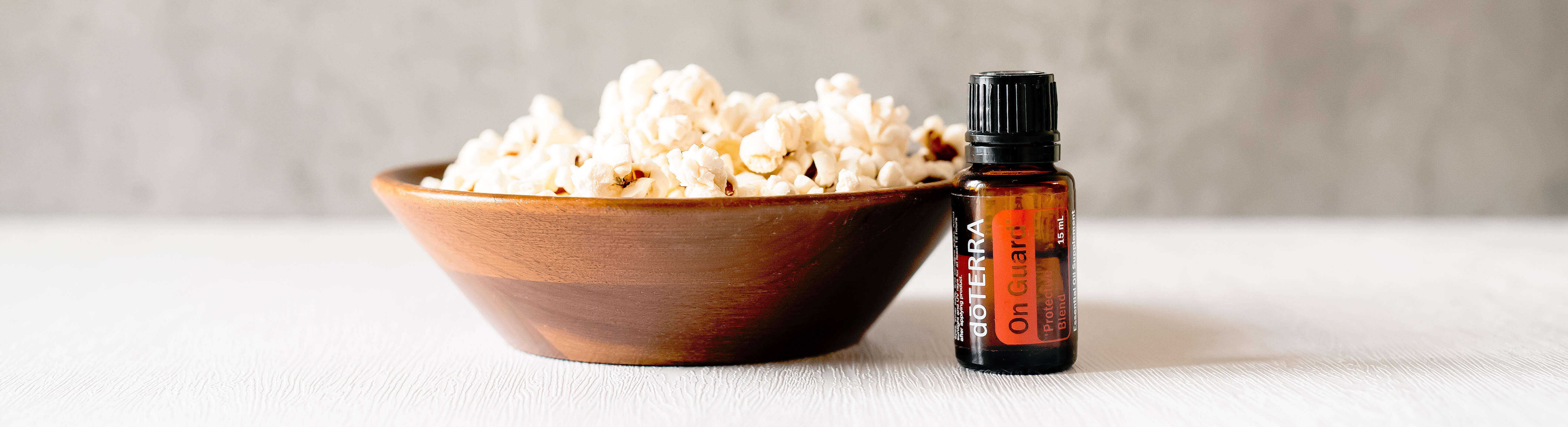 Ingredients 1 cup popcorn kernels 1/4 cup solid coconut oil 1/4 cup maple syrup ground cinnamon to taste salt to taste 5 drops On Guard blend 3 drops Cinnamon essential oil