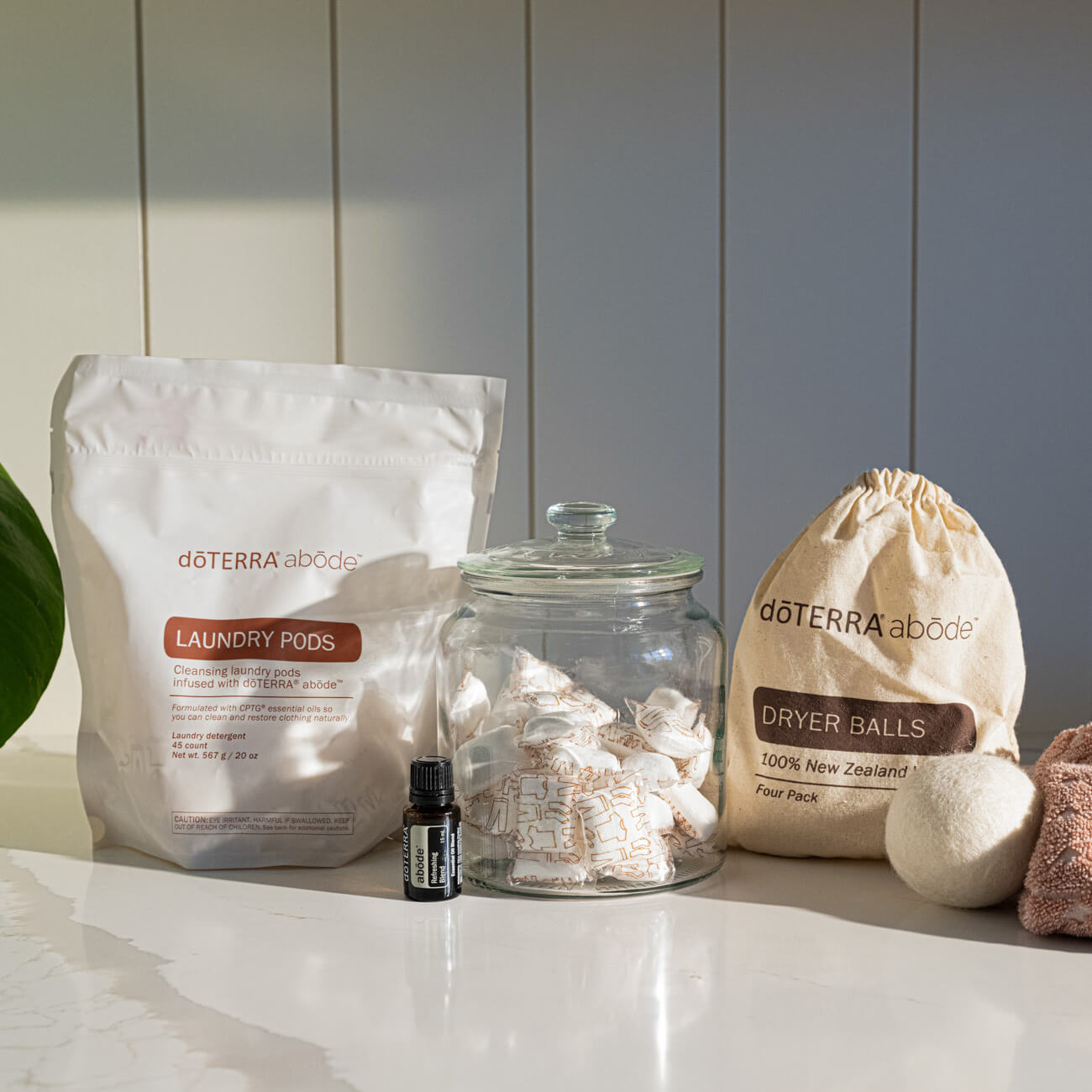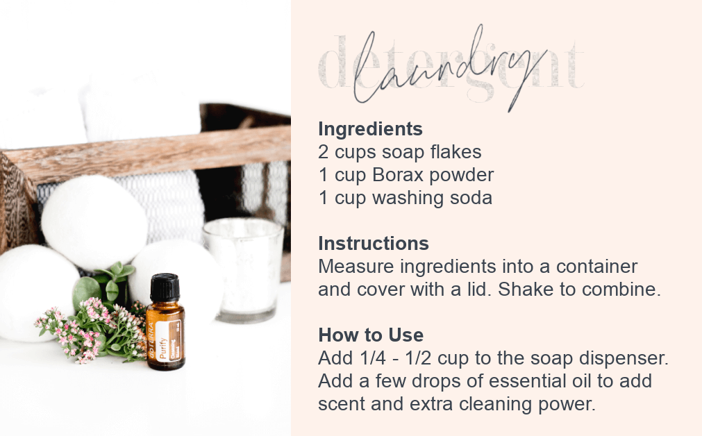 If you don't want the hassle of DIY, dōTERRA has you covered! Get these green and clean laundry supplies with your next order. The liquid is super concentrated, so you only need a tablespoon (or 2, if you have a large load). If you prefer pods, toss one in the drum and run your laundry as usual. Grab some wool dryer balls while you're at it.... it's a lifetime supply, because they last forever!
