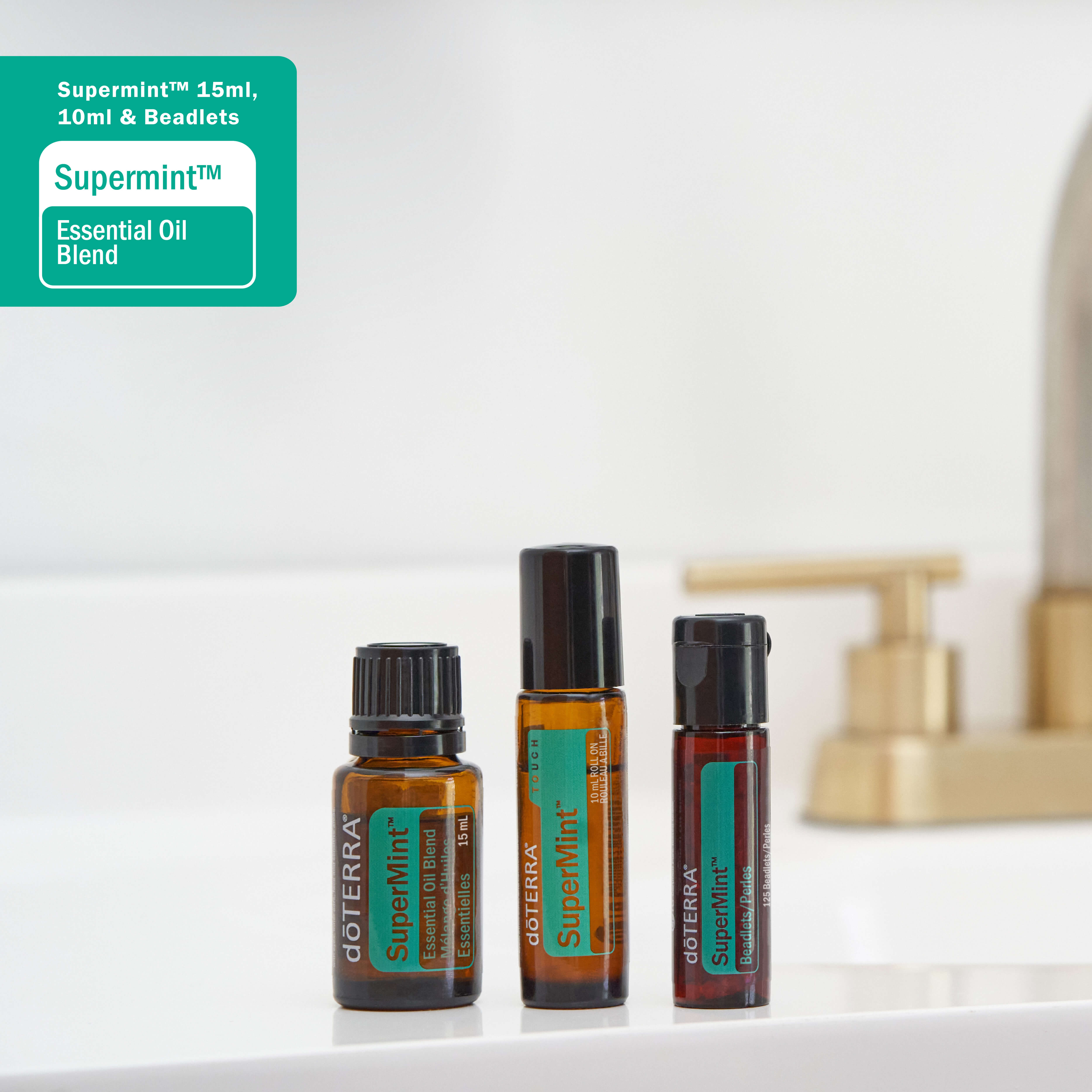 Just like Peppermint, SuperMint is available in 3 formats: a 15 mL bottle, a 10 mL prediluted roller bottle for topical use, and beadlets (perfect for use as a breath freshener). dōTERRA also has a natural toothpaste flavoured with SuperMint!