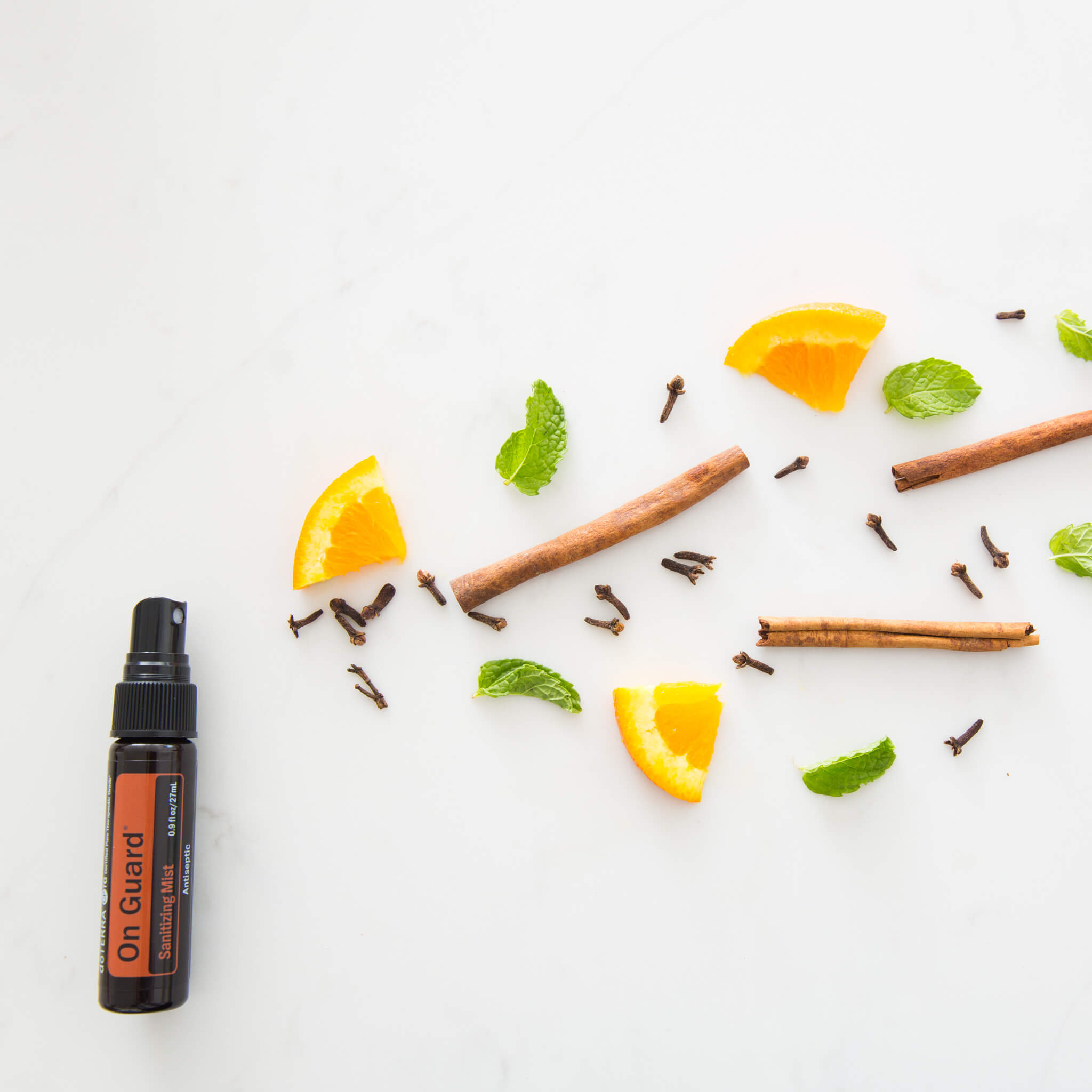 |  On Guard Sanitizing Mist is a sanitizer that smells good AND doesn't dry out your skin. Use it for your hands or for any surfaces that need cleansing... I use it on restaurant tables as well as airport surfaces I'm using, plus airplane tables, seatbelts and armrests too, Don't leave home without it!