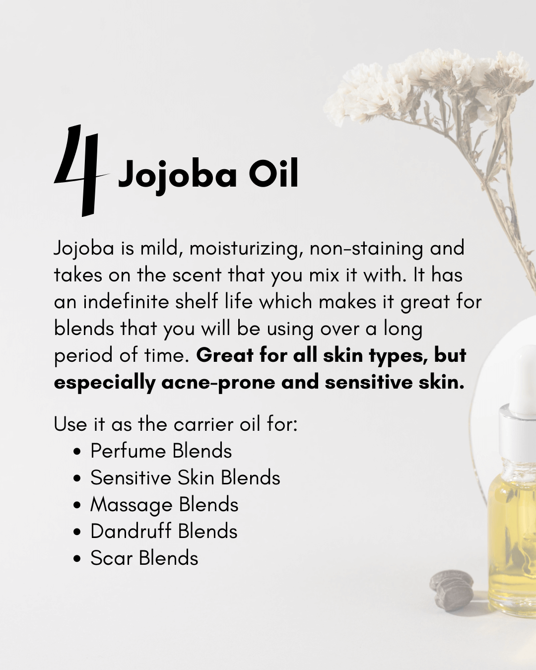 When purchasing carrier oils, make sure that you check expiry dates carefully. Some carrier oils oxidize rather quickly, so choose the bottle that has the longest expiry.