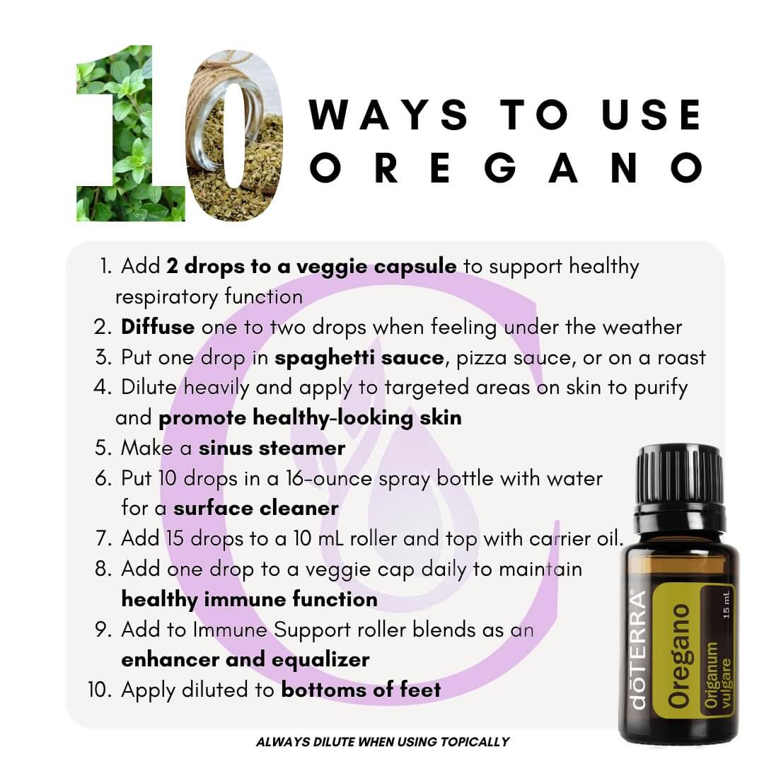 Oregano is a VERY HOT oil because it is very high in carvacrol. Never use this oil topically without diluting it with a carrier oil. If you like to use "oil of oregano" such as what you find in health food stores, fill an empty 15 ml bottle with good quality olive oil and add 10 drops of doTERRA's oregano. Mix it thoroughly and taste test it. Add more drops of Oregano until you reach your preferred strength.