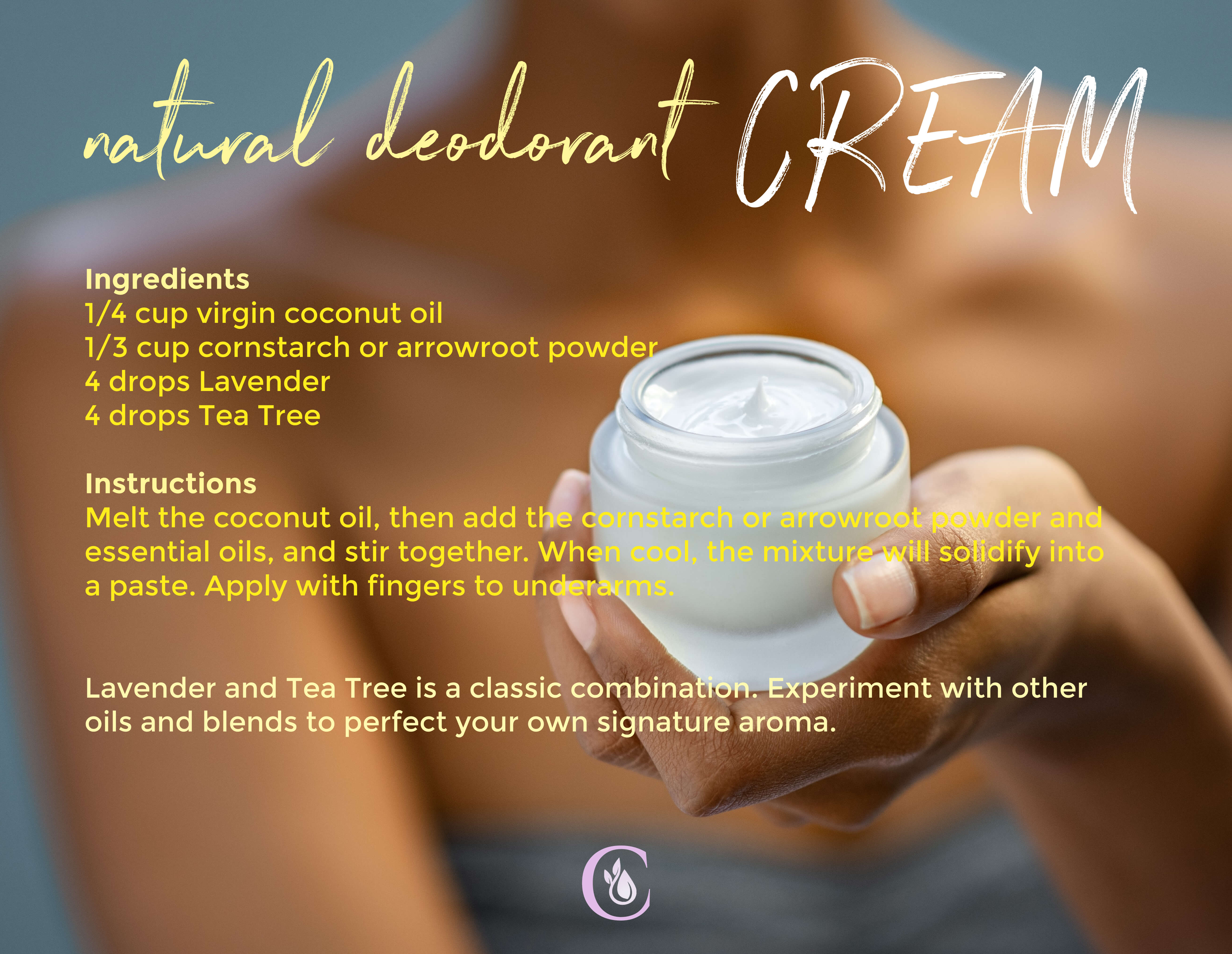 If you really don’t like making your own deodorant, dōTERRA does have a few natural deodorants that work well: Balance is the original version, but there is also one with Douglas Fir and Greek Orange which is my favourite. Over the years dōTERRA has also made deodorant from limited time blends like Beautiful and Citrus Bloom that I absolutely LOVE. When you see them, GRAB THEM because they are all fantastic!