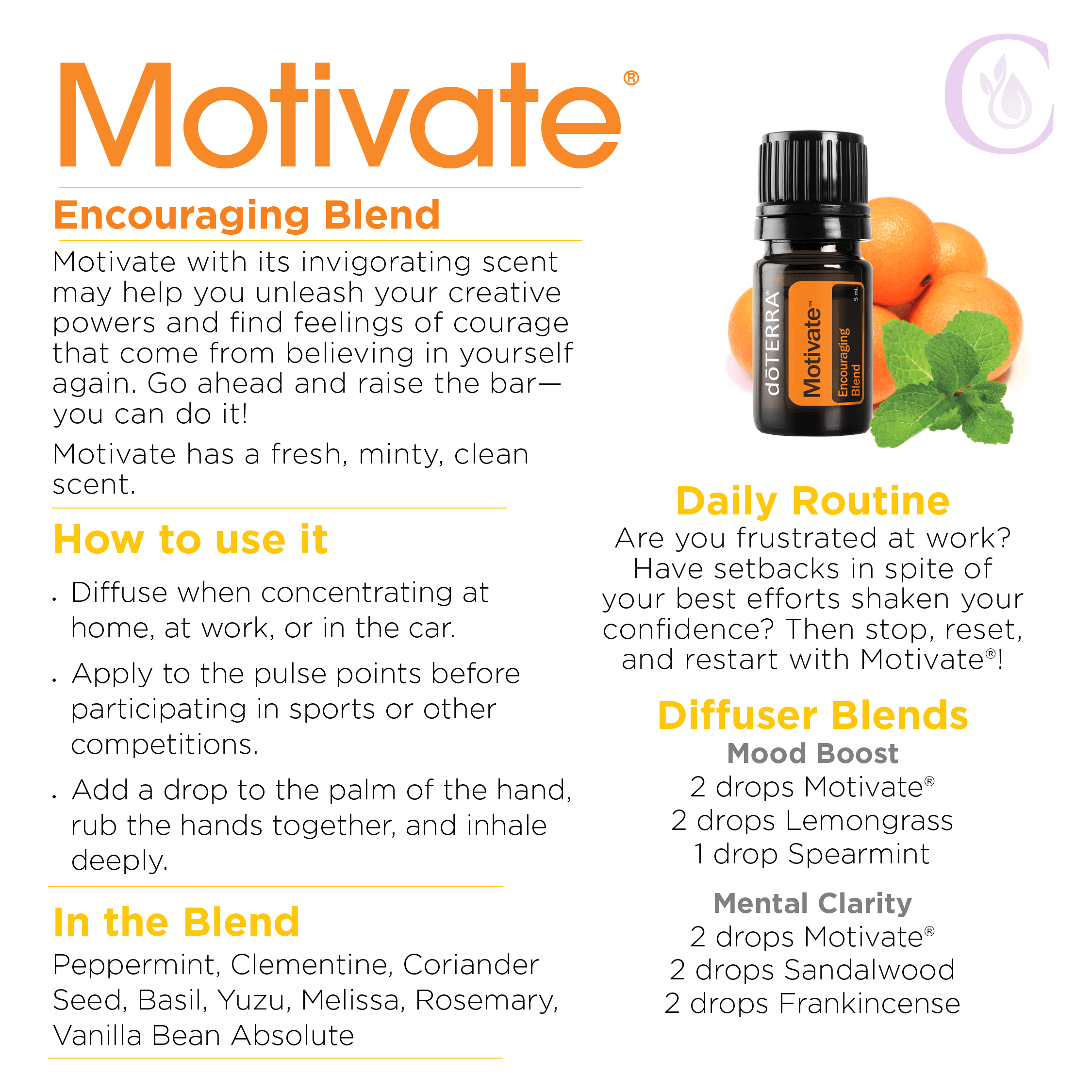 We think of Chamomile as a sweet little flower that helps people to calm down, but did you know that it was used in Ancient Rome to give soldiers courage during battle? This ain't no sissy flower! Combine Roman Chamomile with a citrus oil like Wild Orange, Clementine, Grapefruit or Tangerine to give that lazy feeling a one-two punch. Use a 1:1 combination, either in the diffuser or topically.