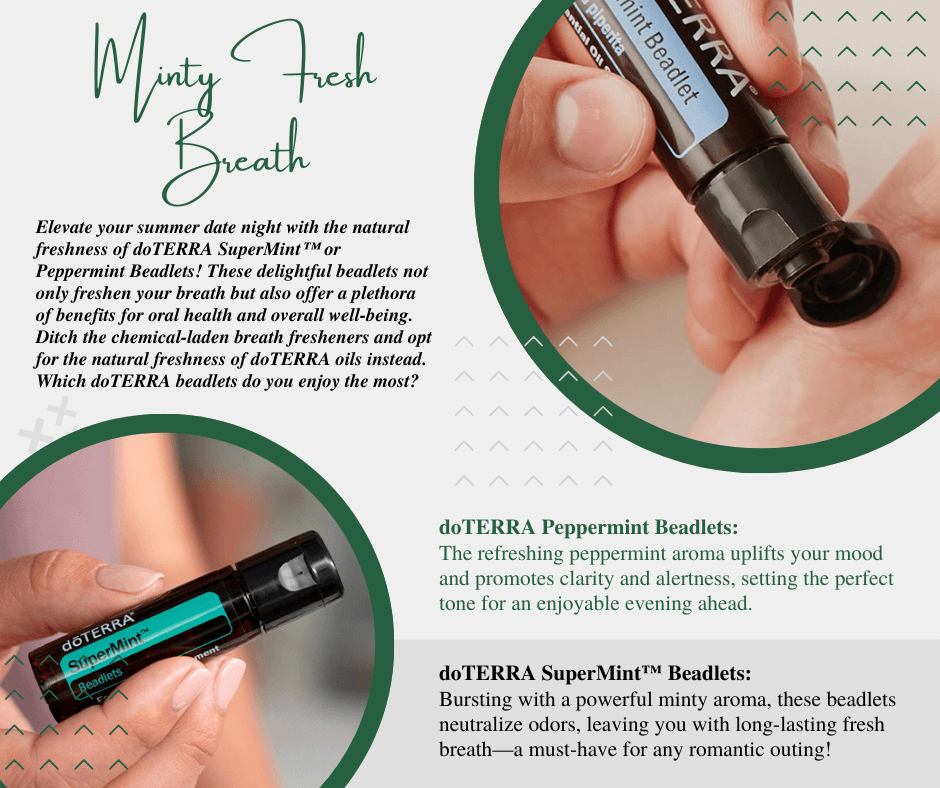 Beadlets: I call doTERRA's innovative beadlets "essential oil caviar"! These wonderful little round beads each contain about 1/3 of a drop of essential oil, and are available in several different flavours. Two that I love as breath fresheners are Peppermint and SuperMint.