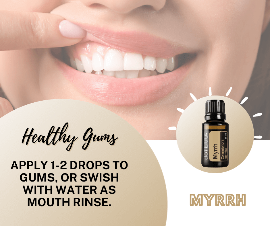 Myrrh: Myrrh is an amazing oil for mouth issues! It's great for gum issues but can also be combined with Clove for other kinds of oral soreness.
