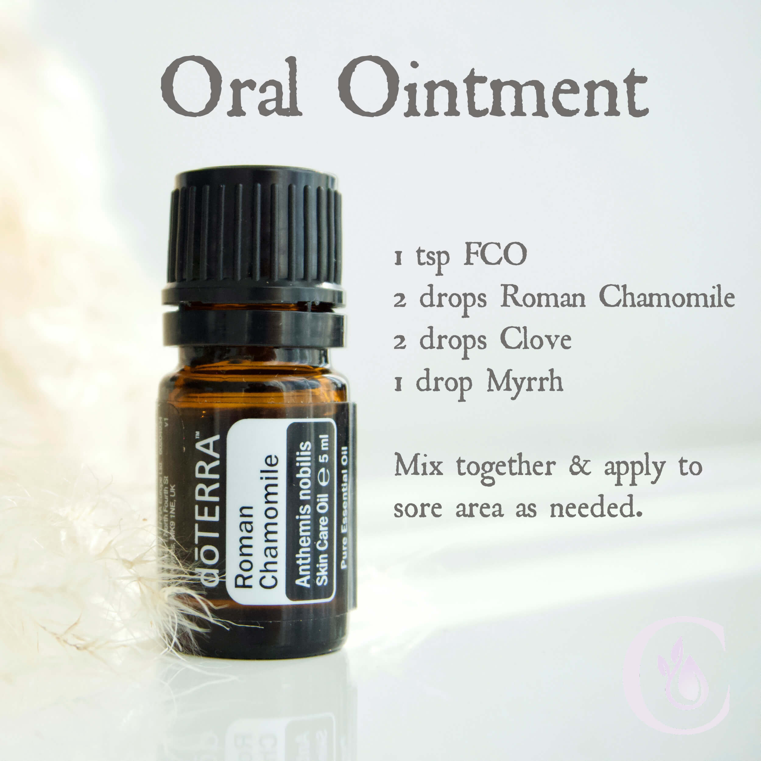 Roman Chamomile: This one might be a bit of a surprise, but as one of doTERRA's most soothing oils, I highly recommend it in an oral care ointment. It has a nice taste, and helps to calm down inflammation. |