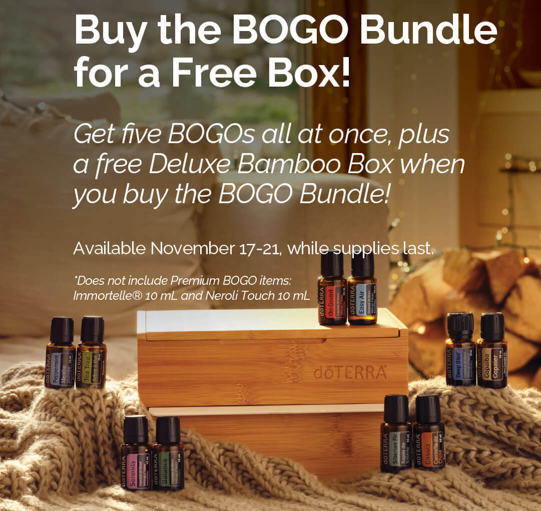 Buy the BOGO Bundle and get a beautiful Bamboo Storage box free ($50 value)! Plus, when your order is 150 PV or more, you will receive a free 10 mL bottle of Osmanthus.