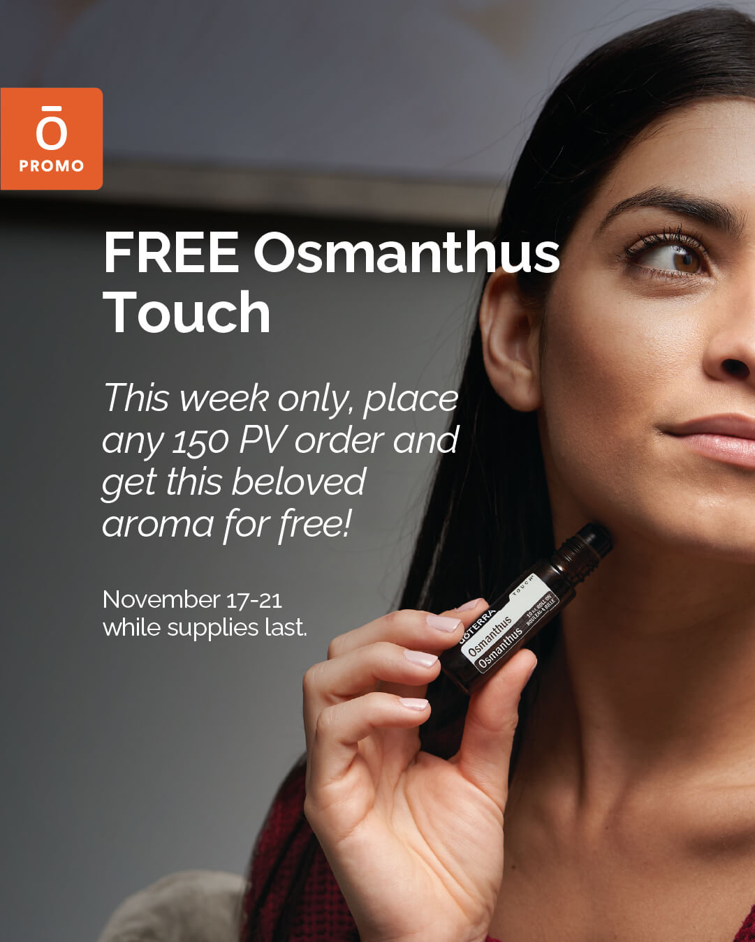 All week long, you can purchase any BOGOs you desire, and pay shipping only once. Shipping is free with orders of 100 PV, and with orders of 150 PV, you also receive a free bottle of doTERRA's Osmanthus Touch roller bottle.