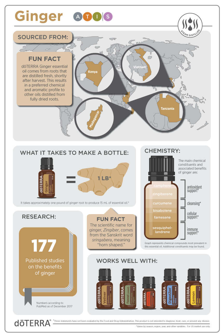 To use Ginger aromatically, inhale directly from the bottle, diffuse it, or place a drop in your hands and inhale deeply. To use Clove topically, dilute 1-2 drops with carrier oil and apply to the wrists, the bottoms of the feet or to the upper abdomen. (Note: Ginger is considered a hot oil, so use caution when applying it topically.) To use it internally, take 1-2 drops under the tongue, in a capsule, or in water.