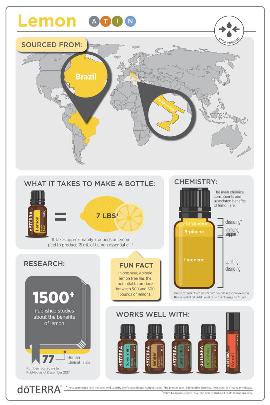 Fun Fact: In one year, a single lemon tree has the potential to produce between 500 and 600 pounds of lemons. It typically takes around 75 lemons to fill a 15mL essential oil bottle.